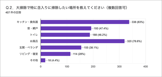 お風呂を念入りに掃除したい意向は、キッチン・換気扇に次ぐ2位