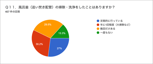 風呂釜(追い焚き配管)掃除の実態は大掃除などで年に1回やそれ以下で後回しの傾向
