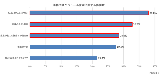 手帳ユーザーのスケジュール以外で手帳に書き込む内容として