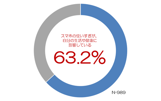 スマホの使いすぎが自分の生活や健康に影響していると感じる人が63.2%