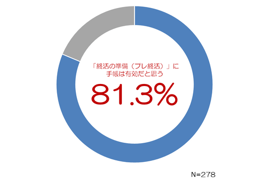 また、「終活の準備(プレ終活)」に手帳は有効だと思う人が81.3%という結果となり、理由として「好きなタイミングで気軽に書けるから」(47.8%)が最も多く挙げられ、思いついたことを気軽に書き留められる手帳を活用することの良さが明らかになりました。