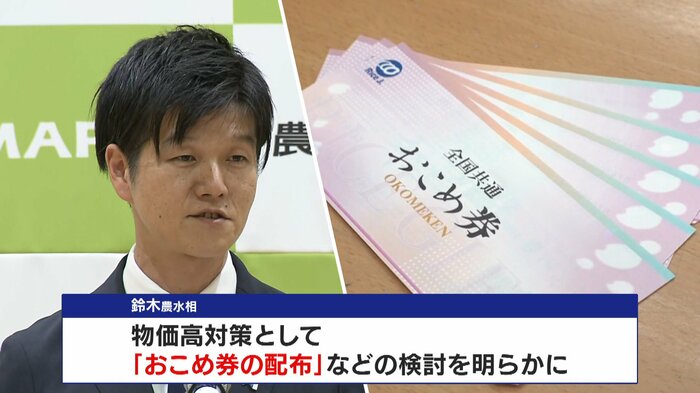 そんな中、就任早々、鈴木憲和農水相が打ち出したのは、備蓄米放出やコメの増産方針などの見直し。そのうえで鈴木大臣は「おこめ券の配布」などを検討することを明らかにしました。