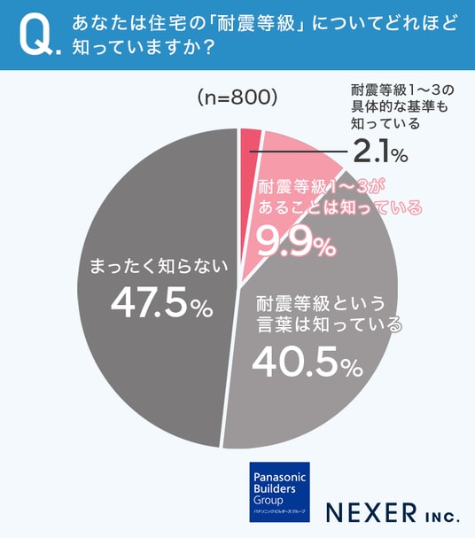 47.5%と半数近くの方が「耐震等級をまったく知らない」と回答しています。