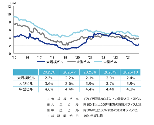 三幸エステート株式会社(本社:東京都中央区、取締役社長:福島正二郎)は、2025年10月度の名古屋市オフィス賃貸状況(空室率&現空面積:全規模、募集賃料&募集面積:全規模、規模別空室率、主要エリア※1空室率:全規模)および全国6大都市(東京・札幌・仙台・名古屋・大阪・福岡)の大規模ビルのマーケットデータをまとめた「オフィスマーケット2025年11月号名古屋」を公表します。