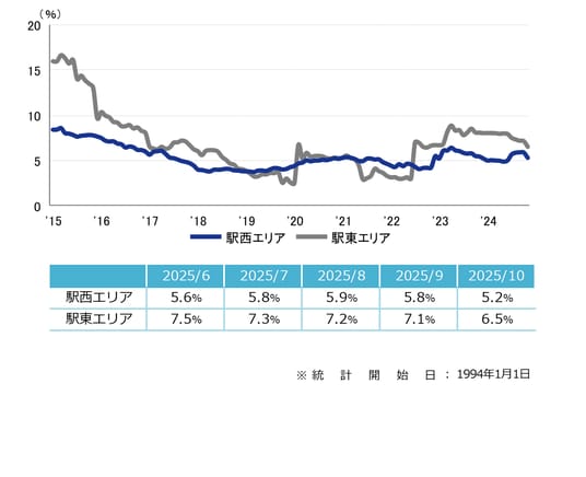 空室率 前月から大幅な低下 「大規模」は1.0ポイントの低下
