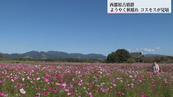 宮崎県西都市にある西都原古墳群では、毎年10月下旬から11月上旬にかけて、約6ヘクタールの花畑に約300万本のコスモスが咲き誇る。