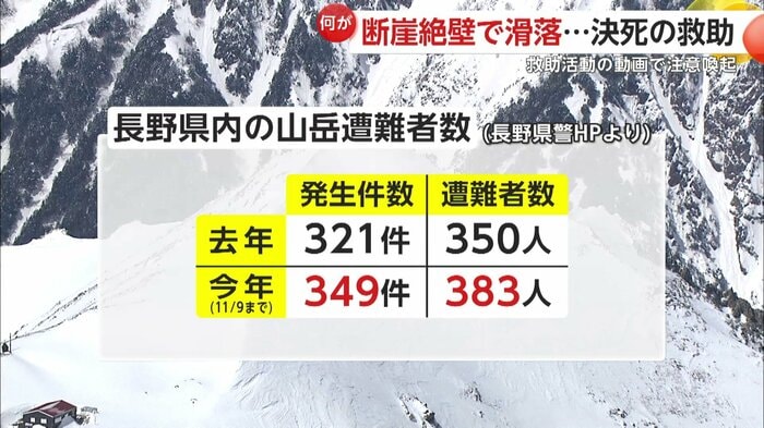 長野県警によると、県内で発生した山岳遭難の件数が、過去最多だった2024年を9日の時点ですでに上回っていることが分かった。