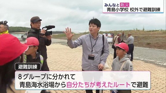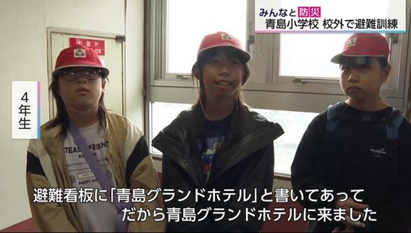 訓練に参加した小学4年生は、「避難看板に『青島グランドホテル』と書いてあったので、そこが安全だと思いました。7階が一番上なので、安全だと考えました」と話した。また別の小学4年生は、「本当の津波の避難を経験できて良かった。避難看板を見て、近くの避難場所を覚えておきたい」と感想を語った。