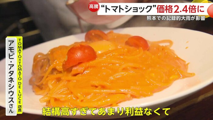 きょう(市場で)見たら、1個トマト300円になっていたんで、結構高過ぎて、利益あまりなくて。安いときは、(1個)88円とか100円とか。今、高い。270円とか300円、1個。たぶん2倍くらい。