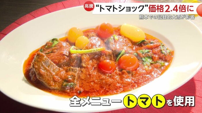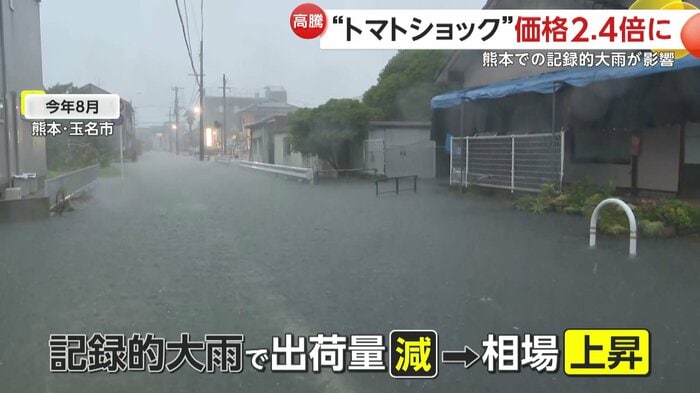トマトの主要産地である熊本県が8月に記録的な大雨に見舞われ、出荷量が減っているため、相場が急上昇した。