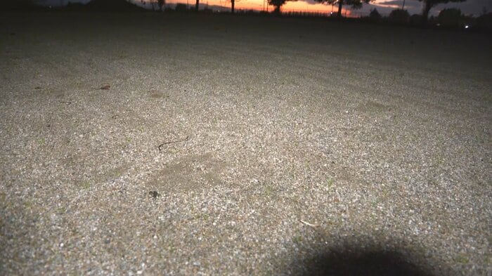 足跡はグラウンドの中央から校舎から離れるように20メートルにわたり、複数確認されました。