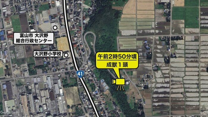 富山市が設置したAIカメラが捉えた映像には11日午前2時50分ごろ、成獣のクマ1頭が映りました。