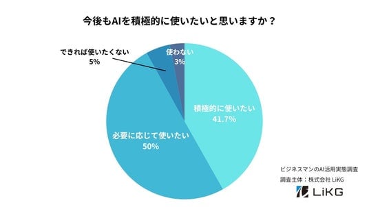 「積極的に使いたい」(41.7%)、「必要に応じて使いたい」(50%)を合わせると、91.7%が今後もAIを活用したいと回答しました。失敗を経ても、「AIは使い方次第で強力な武器になる」という実感を得ている人が多いようです。
