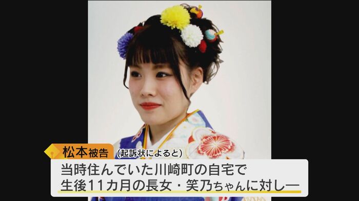 事件が起きたのは2018年7月。起訴状によると松本被告は、当時、住んでいた川崎町の自宅で、生後11ヵ月の長女、笑乃ちゃんに対し、頭に強い衝撃を与える暴行を加えて死亡させたとされている。