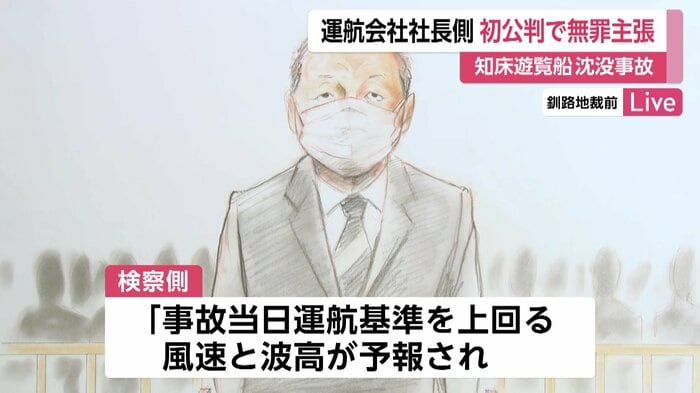 3年前、北海道東部の知床半島沖で遊覧船が沈没し乗客・乗員20人が死亡、6人が行方不明になった事故で業務上過失致死の罪に問われた運航会社社長の初公判が始まった。