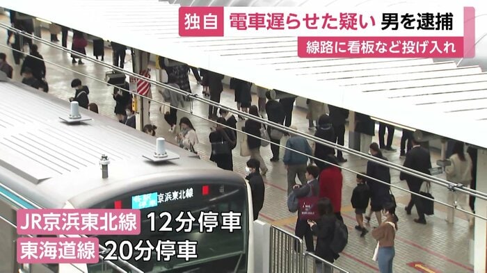 線路内に看板や三角コーンを投げ込み、電車を遅らせた疑いで、54歳の男が警視庁に逮捕された。