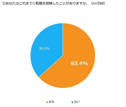 事前の調査で建設業に従事すると回答した方に転職経験を聞いたところ、「ある」と回答した人が63.4%となりました。3人に2人が転職を経験していることになります。