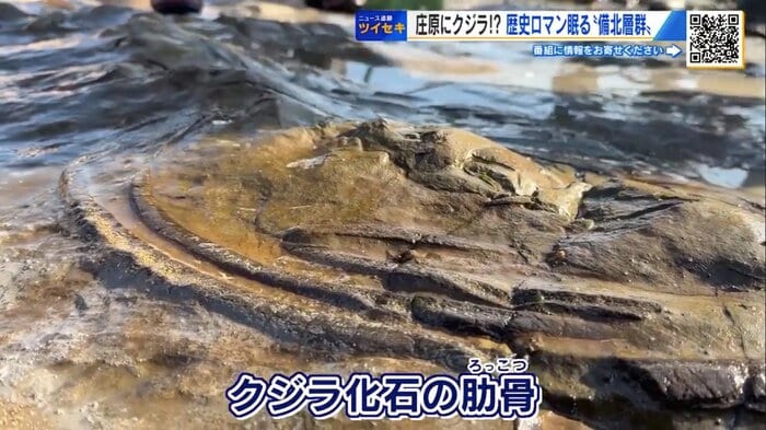 そう説明するのは、化石を発見した大澤仁さん。川底に埋まっていたのは全長約4~5メートルのクジラの化石だ。全身がほぼ残る例は珍しく、下あごの骨や肋骨まではっきりと形をとどめている。