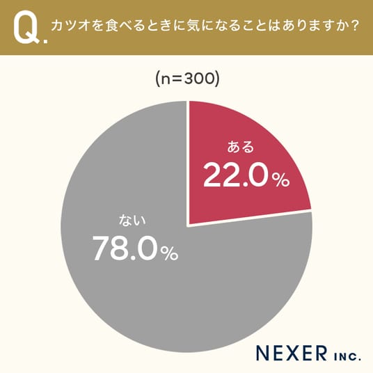 22%の方がカツオを食べるときに気になることが「ある」と答えました。