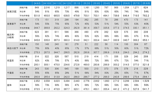 不動産ビッグデータとAI等のテクノロジーを活用し、不動産マーケティングプラットフォームを提供する株式会社マーキュリー(本社:東京都新宿区 代表取締役:陣 隆浩、証券コード5025、以下「当社」)は、独自調査による新築マンション動向を発表致します。今月は、2025年8月度分譲実績データです。