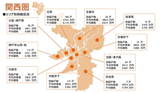 集計対象エリアは首都圏及び関西で、それぞれのエリア別相場情報、需給動向、着工件数等を集計しました。