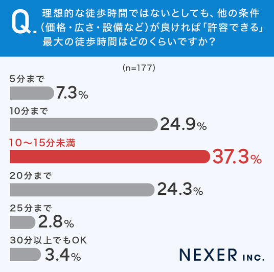 理想は「徒歩10分以内」でも、利便性よりもコストパフォーマンスを優先することが分かります。