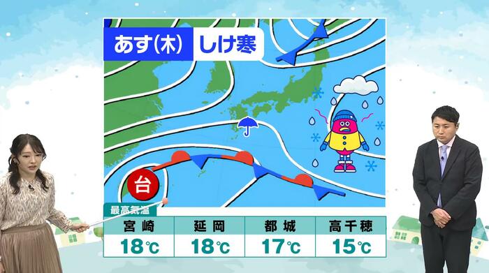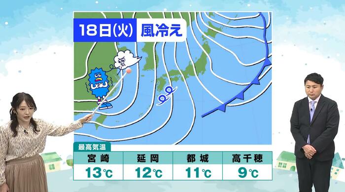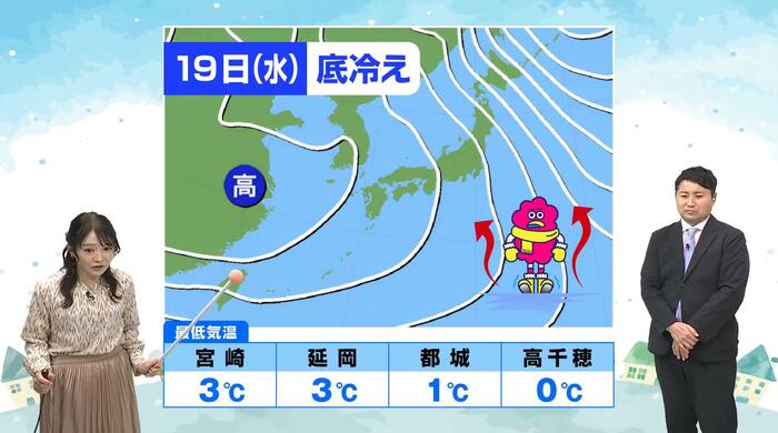 テレビ宮崎の夕方ニュース「#Link」でお天気コーナーを担当している気象予報士・古山圭子さんが天気の豆知識を解説するコーナー。今回は、「3つの寒さ」についてお伝えします。