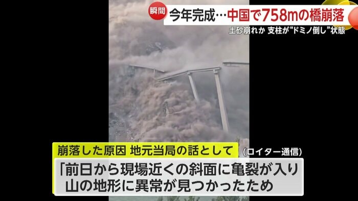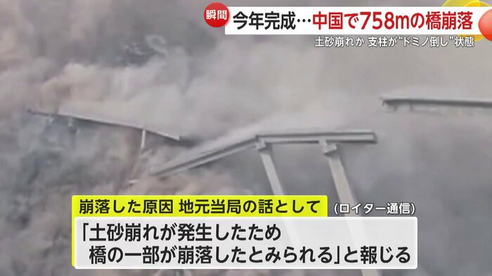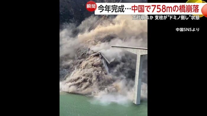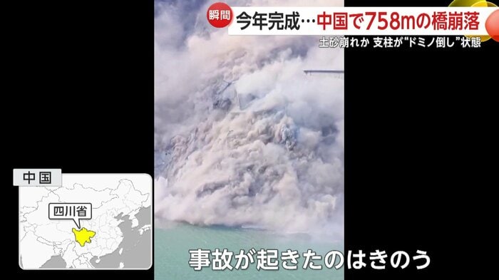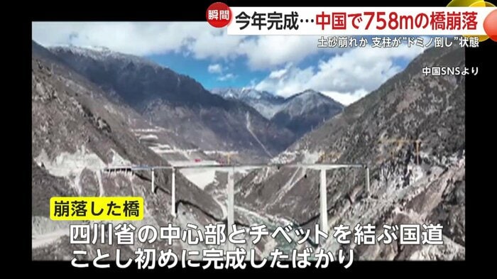 崩落した橋は、全長758m。四川省の中心部とチベットを結ぶ国道で、2025年初めに完成したばかりだった。