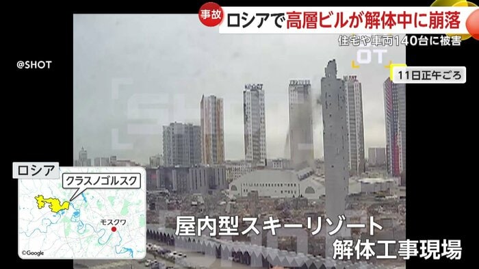 一方、ロシアのモスクワでは、高層ビルの解体作業中に建物の一部が崩落。