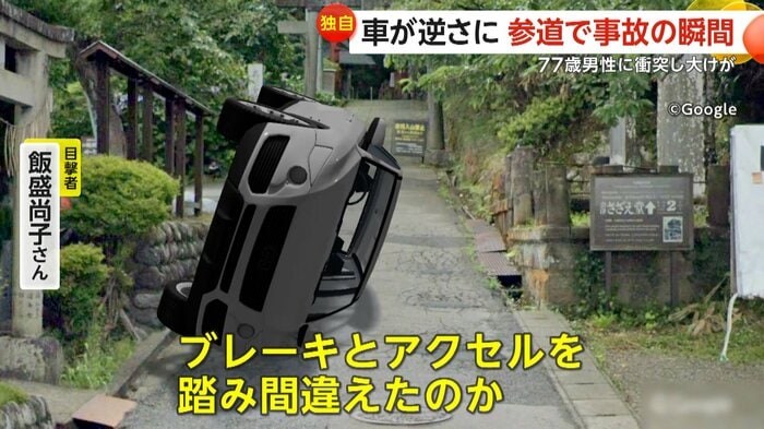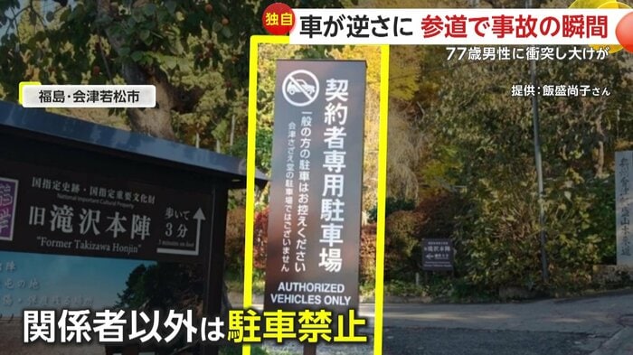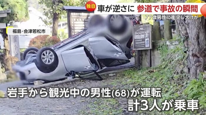 福島・会津若松市の参道で車が横転し、歩行者の男性が重傷を負った。事故は観光客の車が「契約者専用駐車場」から出た直後に起きたとみられている。