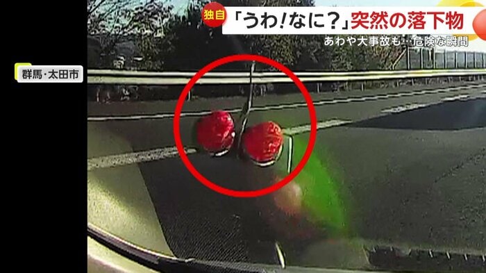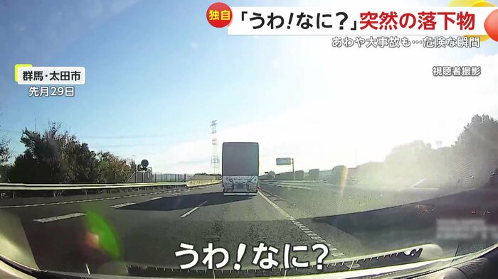 群馬・太田市を走る高速道路で10月29日午前8時ごろ、カメラがとらえたのは、突然、何かが車に向かってくる様子。