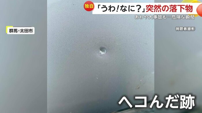 そして、車のボンネットには、落下物によるものとみられるへこんだ跡が…。