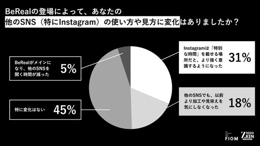 BeRealの登場による他のSNSへの影響として、31%が「Instagramは『特別な時間』を載せる場所だと、より強く意識するようになった」 と回答。Z世代が「ハレ(非日常)」のInstagramと「ケ(日常)」のBeRealを明確に使い分けている実態が明らかになりました。