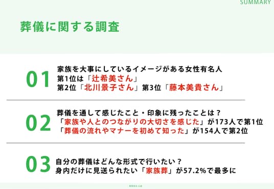 ・自身の葬儀形式として「家族葬」を希望する人が57.2%で最多に