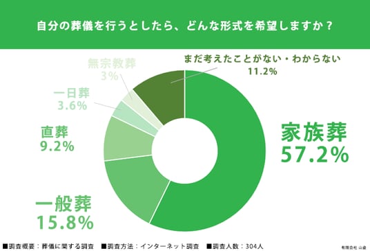 自分の葬儀を行うとしたら、「家族葬」を希望する人が57.2%で最多に