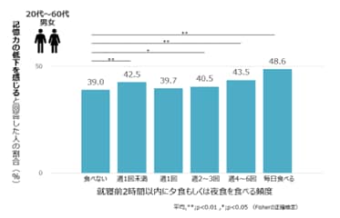 ~ 就寝前2時間以内の食事の頻度が高い人ほど記憶力の低下を感じる割合が高い ~