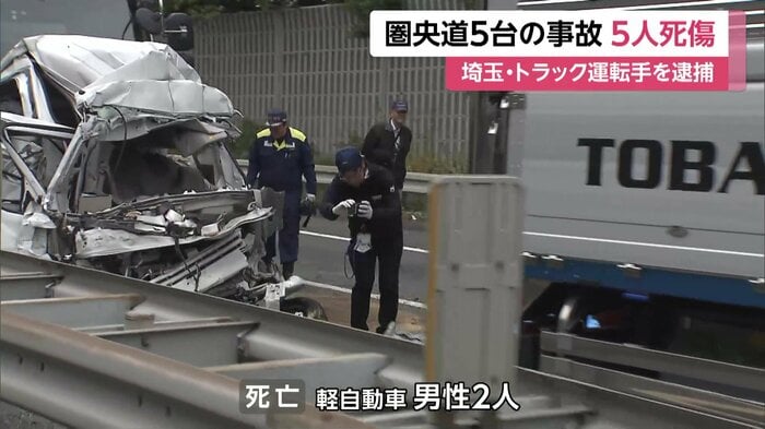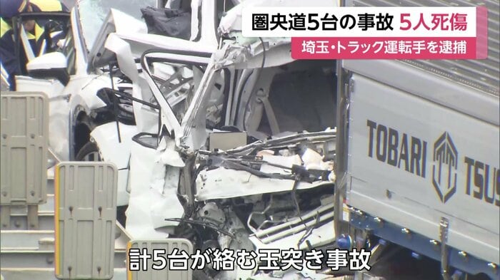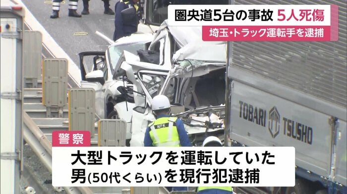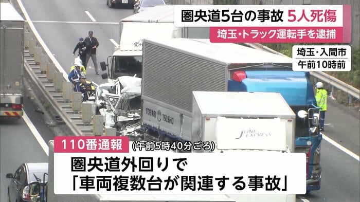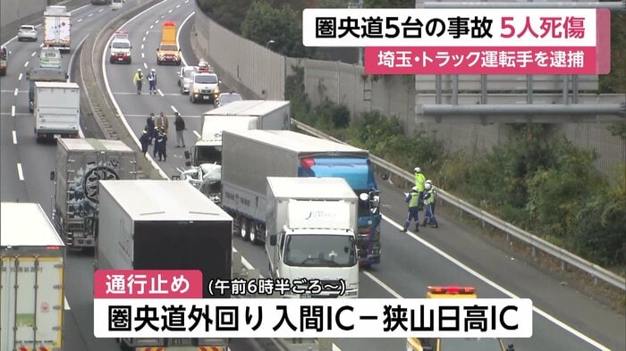 埼玉県・入間市の圏央道で、トラックと乗用車などあわせて5台がからむ事故があった。