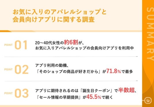 01|20~40代女性の約6割が、お気に入りアパレルショップの会員向けアプリを利用中