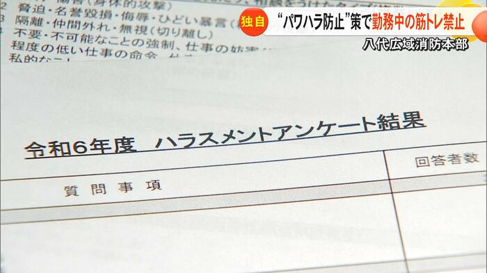 八代広域消防本部では、2025年2月に行ったハラスメントアンケートで、過度な負荷をかける筋トレの強要や強制的なトレーニングによるケガや暴力を指摘する回答が寄せられていた。