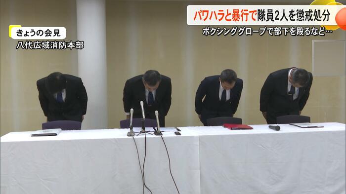 八代広域消防本部は、部下の体をボクシンググローブで殴るなどのパワハラをしたとして、男性消防司令補を停職に、また酒に酔って飲食店の女性従業員に暴行を加えた隊員を戒告処分とした。また、八代広域消防本部は組織内のパワハラ防止策の一環として勤務中の『筋トレ』を禁止する指示を出したことが分かった。