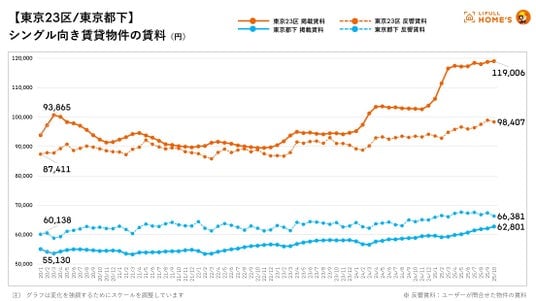 LIFULL HOME'Sマーケットレポート2025年10月シングル向き賃貸物件(東京23区・東京都下)