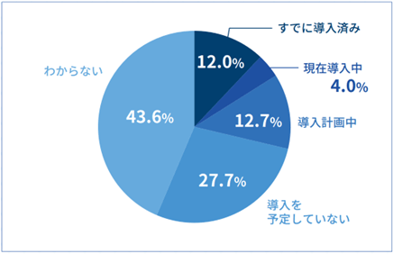 「すでに導入済み」と答えた企業が12.0%、「現在導入中」と答えた企業が4.0%、「導入計画中」と答えた企業が12.7%となりました。「すでに導入済み」「現在導入中」を合わせると16%となり、これはキャズム理論※3で示されるイノベータ(2.5%)、アーリーアダプター(13.5%)の合計値に達しています。このことから、SASE 市場が本格的な普及期に入ったことが分かります。