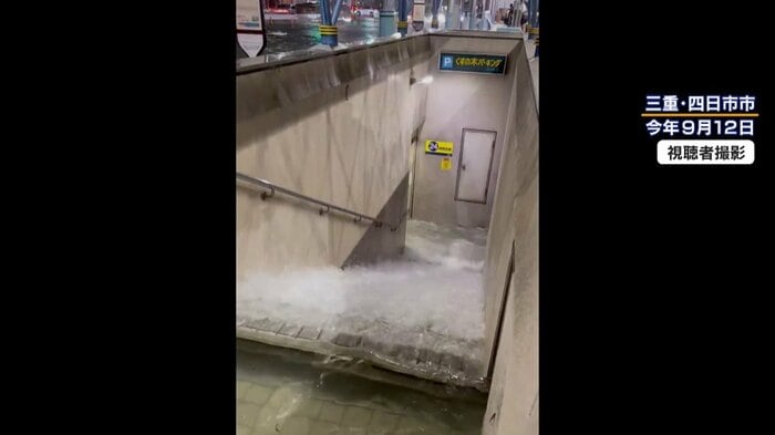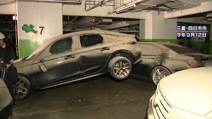 9月12日、三重県内を襲った観測史上最大の記録的な大雨により、甚大な被害が出た四日市市の地下駐車場「くすの木パーキング」。