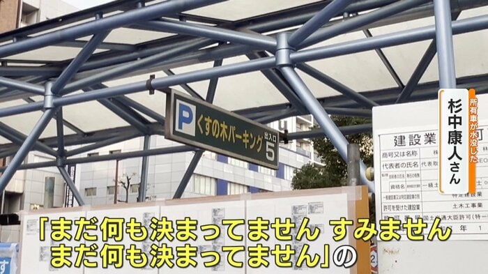 水没した車の修理などに関して、駐車場の管理会社からの補償があるのかないのか、まだ曖昧な状態が続いており、自身が加入する任意保険を使って修理などをすると、一般的に、翌年から保険料が上がってしまうため、管理会社からの回答を待ち続けているといいます。