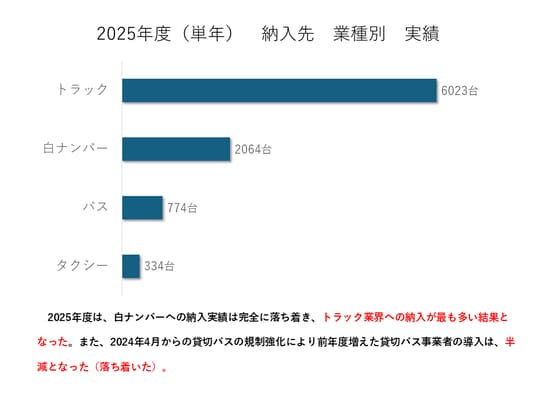 2025年の単年度集計では、機種別実績に加え緑ナンバー・⽩ナンバー別等績もご確認いただけます。