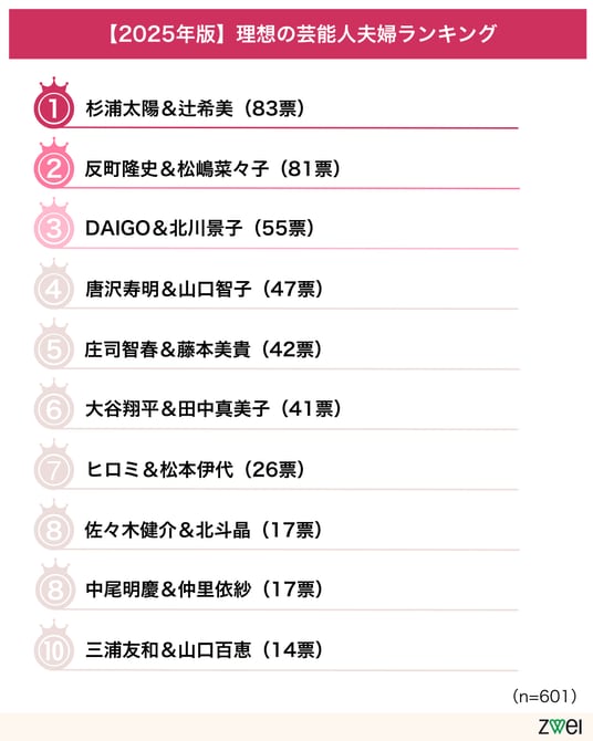 【2025年】理想の夫婦 総合ランキングトップ10