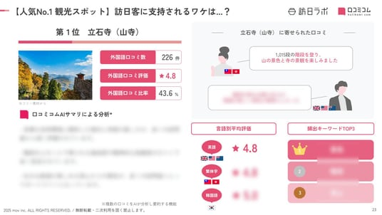 そのほか、言語別ランキングや口コミ分析の詳細は、調査資料をご覧ください。