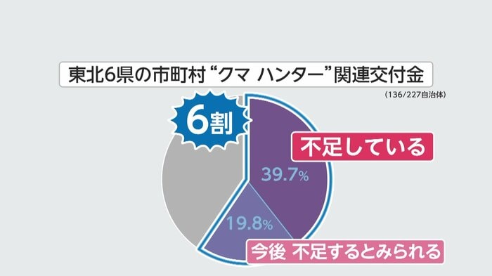 ハンターへの報酬の元となる国からの交付金について「不足している」または、「今後不足するとみられる」と答えた市町村は、6割(59.5%)に上った。