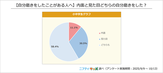ニフティ株式会社(本社:東京都新宿区、代表取締役社長:前島 一就、以下、当社)は、当社が運営する子ども向けサイト「ニフティキッズ」にて、「自分磨き」に関するアンケート調査を実施し、本日11月13日(木)にその結果をまとめたレポートを公開しました。