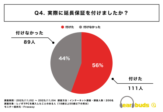 ゲーミングPCをお得に購入するための専門メディア「イヤバズ」(運営:合同会社気づけば、代表:福田貫太)は、レノボPC購入者200人を対象に「延長保証」に関する独自アンケートを実施しました。